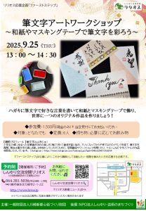 リリオス応援企画「ファーストステップ」から、今回は筆文字Aju(あじゅ)先生が登場、リリオスでは初めての「筆文字アート」のワークショップを開催しました。