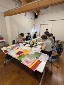 当日は定員の6名満席。ハガキをデザインするための和紙を選びますが、たくさんあるため迷ってしまいます・・好みのものをチョイスする楽しみがありますね。
