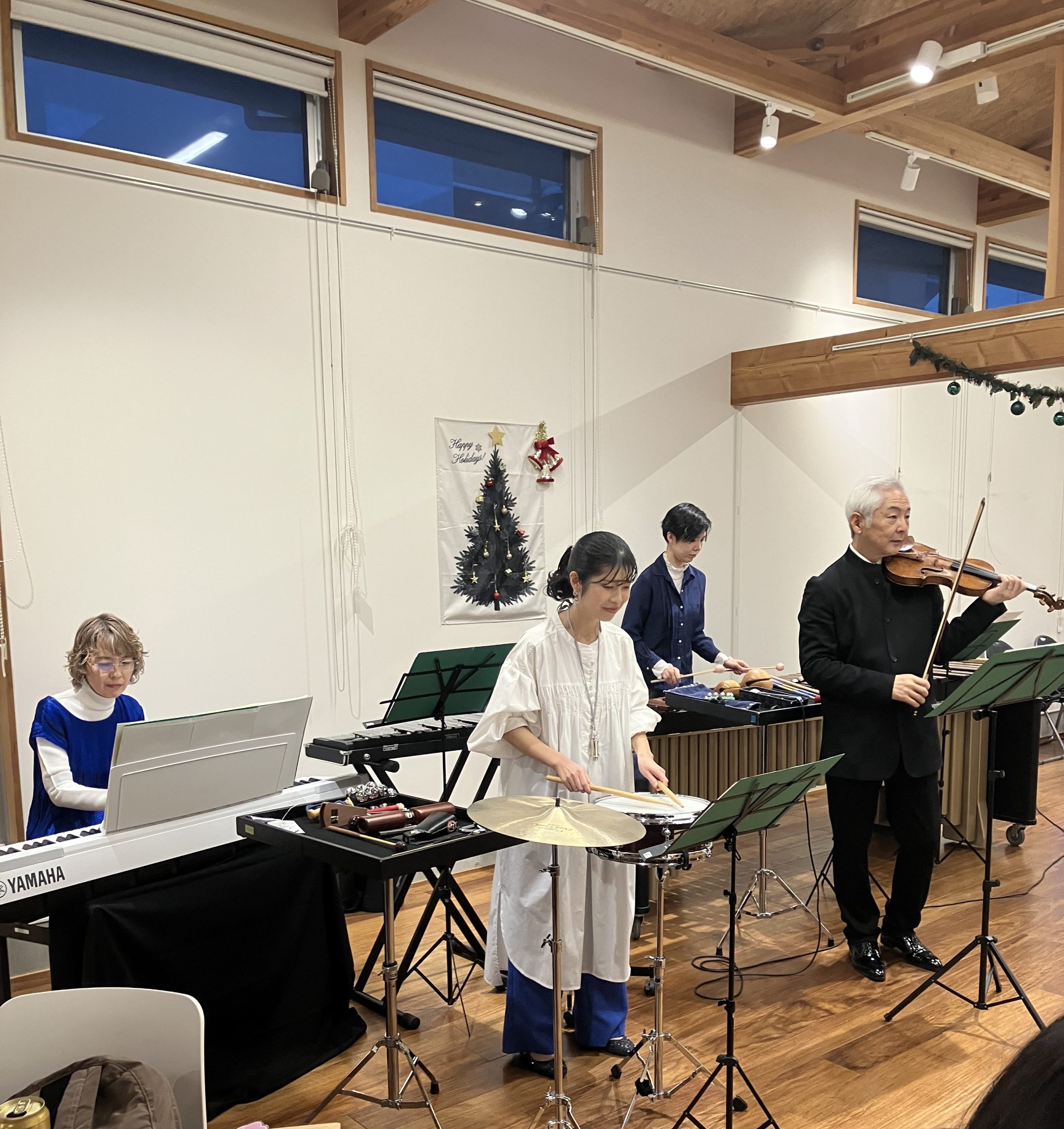 ヴァイオリン、マリンバ、キーボード、打楽器の美しい音色に引き込まれました。