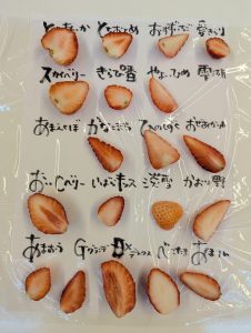 並べてみるとよく分かるのが、ひとえに「苺」と言っても形や色の違いが様々で、この川崎市麻生区近郊でもこれだけの種類の苺を購入することが可能なんだということも知りました。